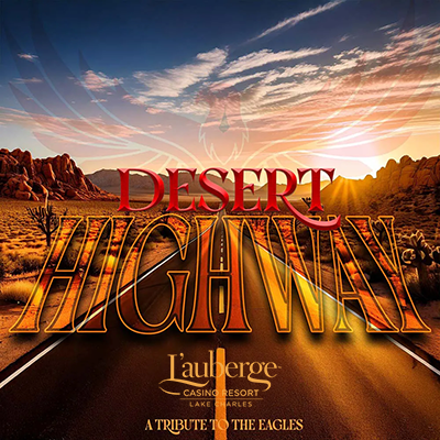 Celebrate Valentine’s Day with a romantic dinner and timeless Eagles hits as Desert Highway takes the stage at L’Auberge Casino Lake Charles on February 14 at 7:00 PM for an enchanting evening of music, dining, and gourmet indulgence.